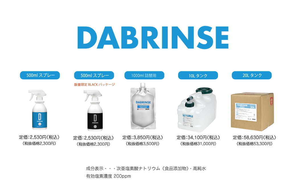1秒間に200万回以上振動するチタン製の振動子を内蔵していて、目的に応じたDABRINSE希釈液(20ppm~80ppm)を4~5μmの非常に細かい粒子にして空間へ噴霧できます。