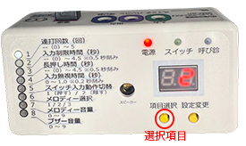 [項目選択ボタン]で[メロディ選択]を選び[設定変更ボタン]でメロディを変更できます。